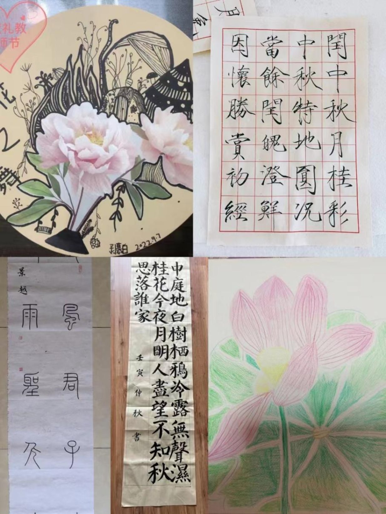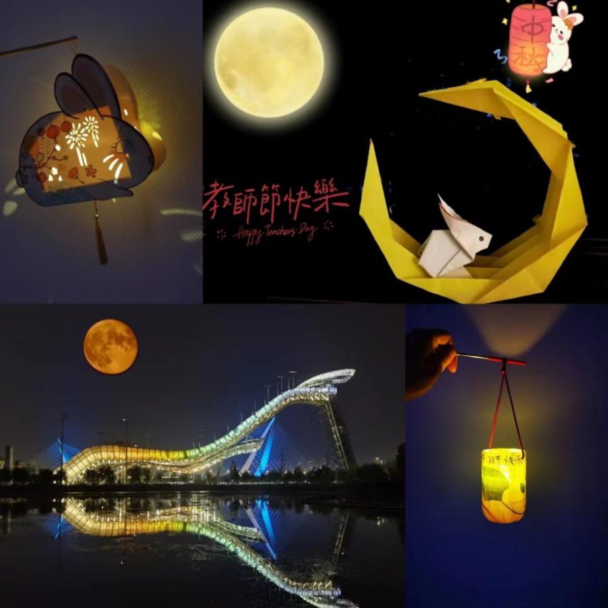 活动中,有的老师全家齐上阵,制作了创意与美味并存的月饼;有的老师巧手diy,制作了精美的中秋花灯、玉兔折纸;还有的老师寄情山水之间,或外出登高,或品茗作诗、挥毫泼墨,值此秋高气爽之际,快意人生!虽不在一地,但天涯共此时,在新澳门六合彩高手论坛 群中,老师们通过图片、视频的形式互相传递着中秋节和教师节的思念与祝福,使节日的气氛更显浓厚。