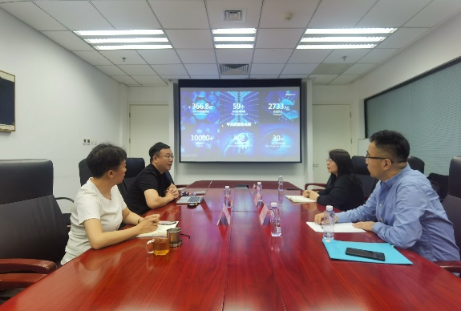 交流讨论后,双方共同参观了蓝色光标集团的工作区域、数智化应用区域,并达成资源共享、优势互补、共同发展、培育人才的深度合作共识。