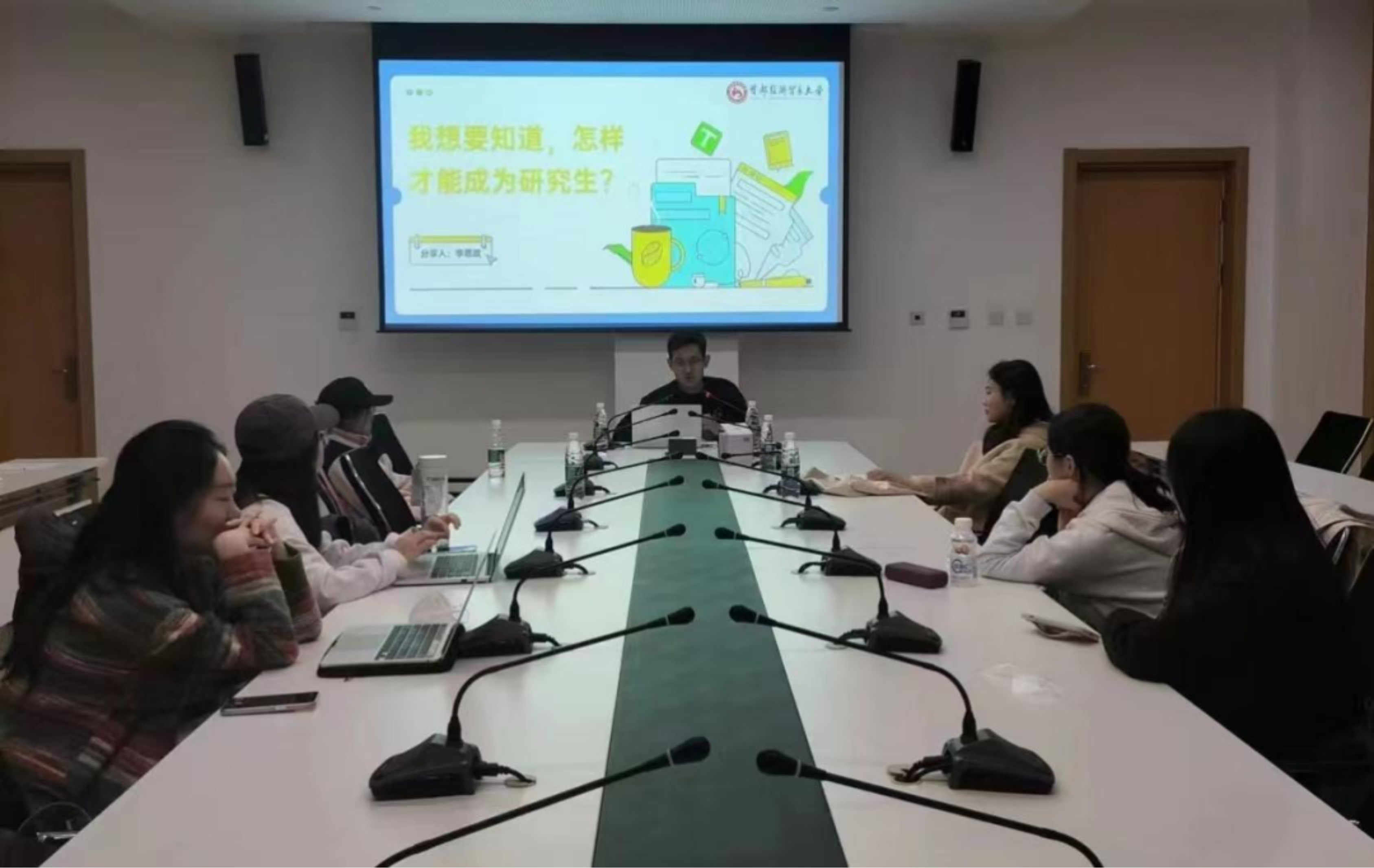 高琼老师,董玮老师和王潇钰学姐先后从考研规划设计和推进进行梳理,讲解了我校新澳门六合彩高手论坛 研究生招生政策与程序以及什么是考研、学硕与专硕的区别、A区和B区的区别以及国家线和院校线的情况,更加详细地介绍了考研相关信息,提出了切实建议。