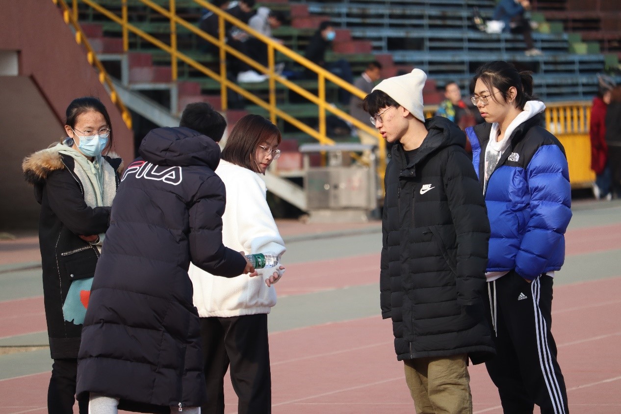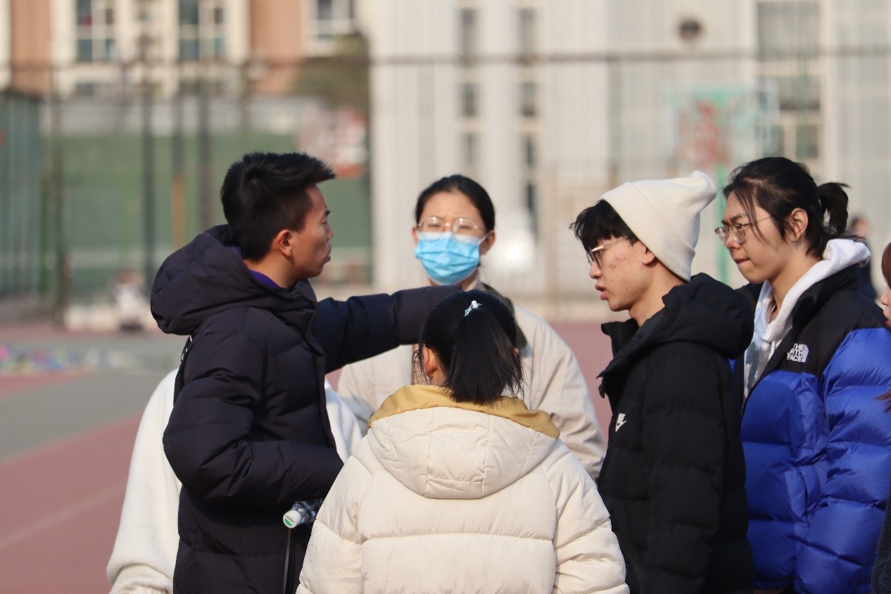 寒风凛凛,吹不灭文传学子对于运动的热情。为参加学校举办的一二·九长跑比赛,2020年12月1日中午12:45,经过严格筛选后,文传的一二·九长跑训练准时开始。人员到齐后,大家围在一起,认真的听王翔讲解比赛的具体规则。每一位参赛人员都全神贯注,努力记住每一条规则。随后,王翔根据每个人的情况及个人意愿,给参赛选手排好了棒位,从而使他们在比赛的时候能够有更好的发挥。