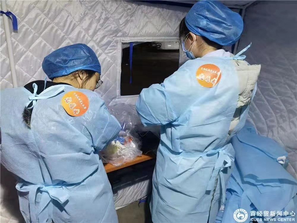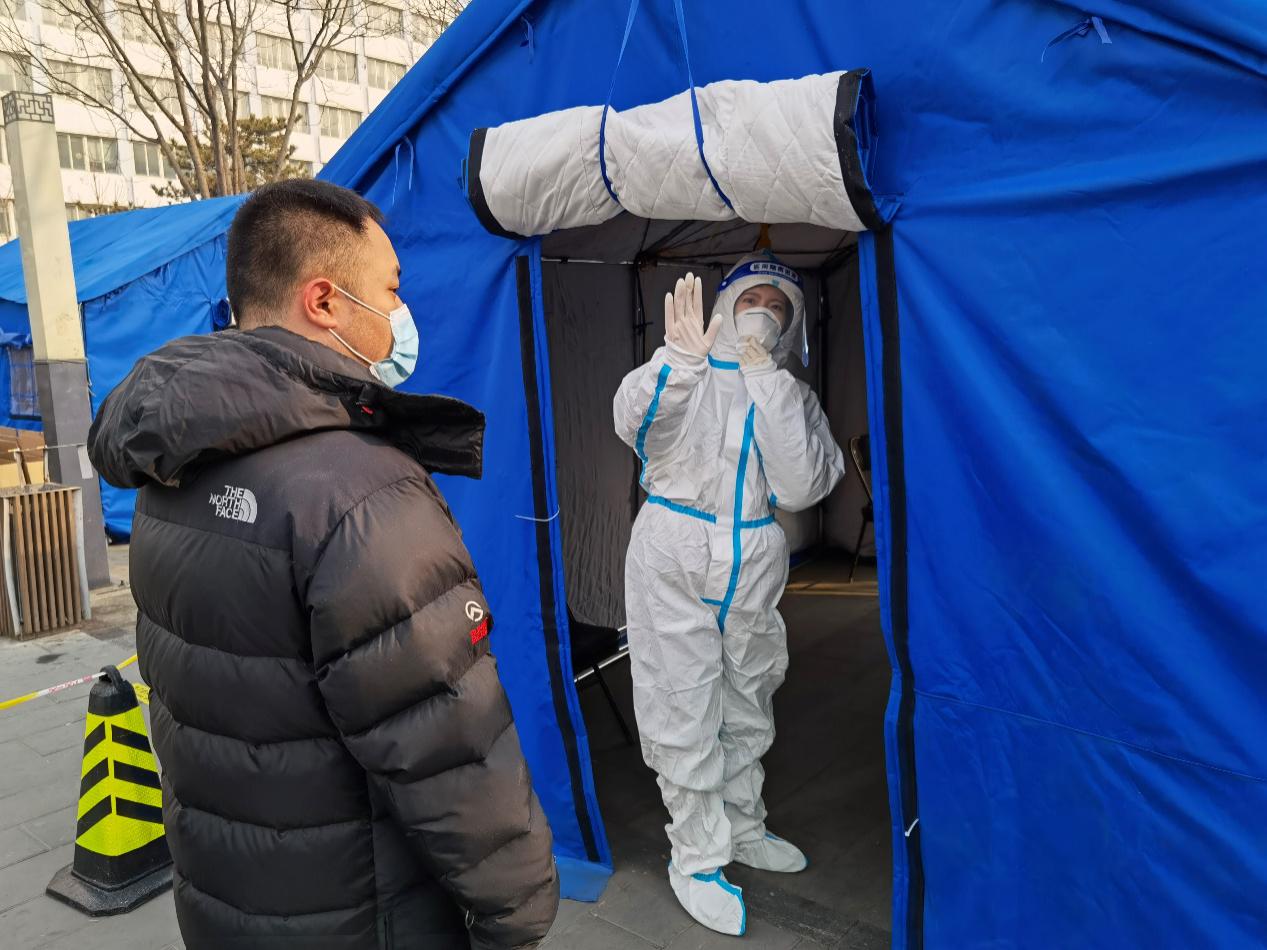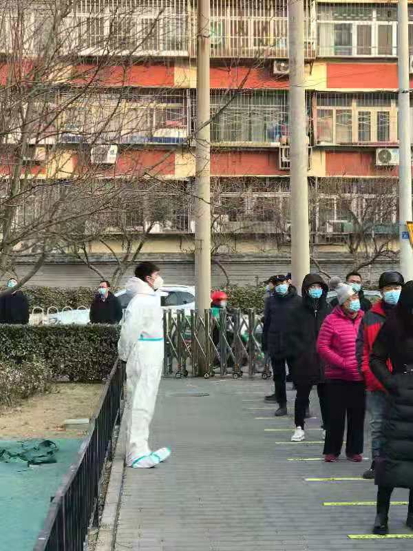 作为首都经济贸易大学的学生,一名预备党员,我十分荣幸能参与到这次志愿服务中,贡献出青年人的力量与担当。第一次穿上防护服,感觉到身上那份沉甸甸的责任。从早上8点到凌晨12点,我所在的站点一天接待受检人员近3万人,医务人员、社区基层工作人员一直坚守在岗位上,为居民排忧解难,即使到了吃饭时间也只是让志愿者们先去吃。寒风凛冽,我却深深被他们的热忱所温暖,向所有抗击疫情的一线工作人员致敬。