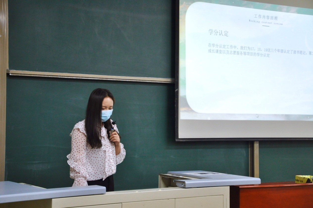 大会第二项,由党总支副书记高琼、分团委书记郭奕彤和兼职辅导员贺琦颁发本学期优秀部长证书。本学期各部门工作进展顺利,完成度高,这与各位部长的辛勤付出是分不开的,在此对优秀部长进行表彰。