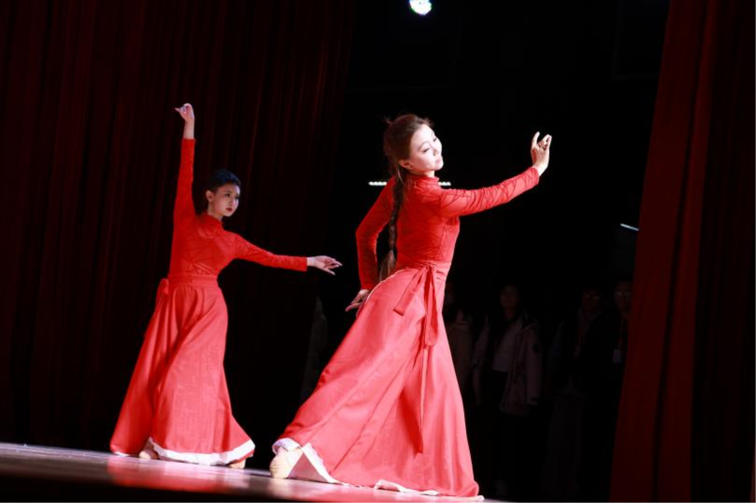 大间奏响起,5名舞者款款入场,随即舒展身姿、翩跹起舞,舞姿轻盈灵动、柔美婉转,与合唱者的深情演唱交织辉映,相得益彰。