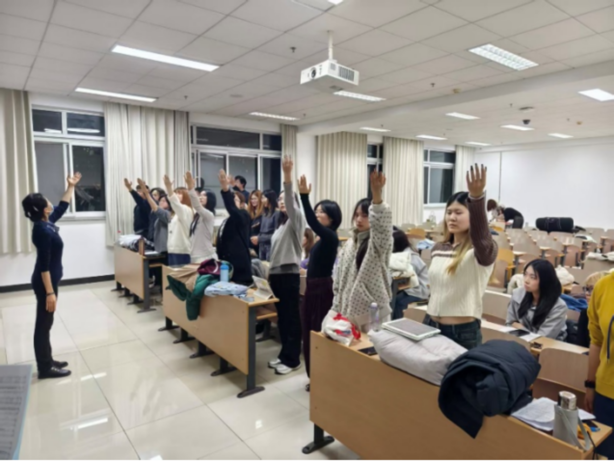 近一个月来,在王阳阳和梁天元两位老师的悉心指导下,同学们认真完成每日的排练任务。为了呈现出最完美的效果,大家带着对祖国母亲的热爱以及为新澳门六合彩高手论坛 争光的决心,齐心协力,反复打磨歌曲和表演。