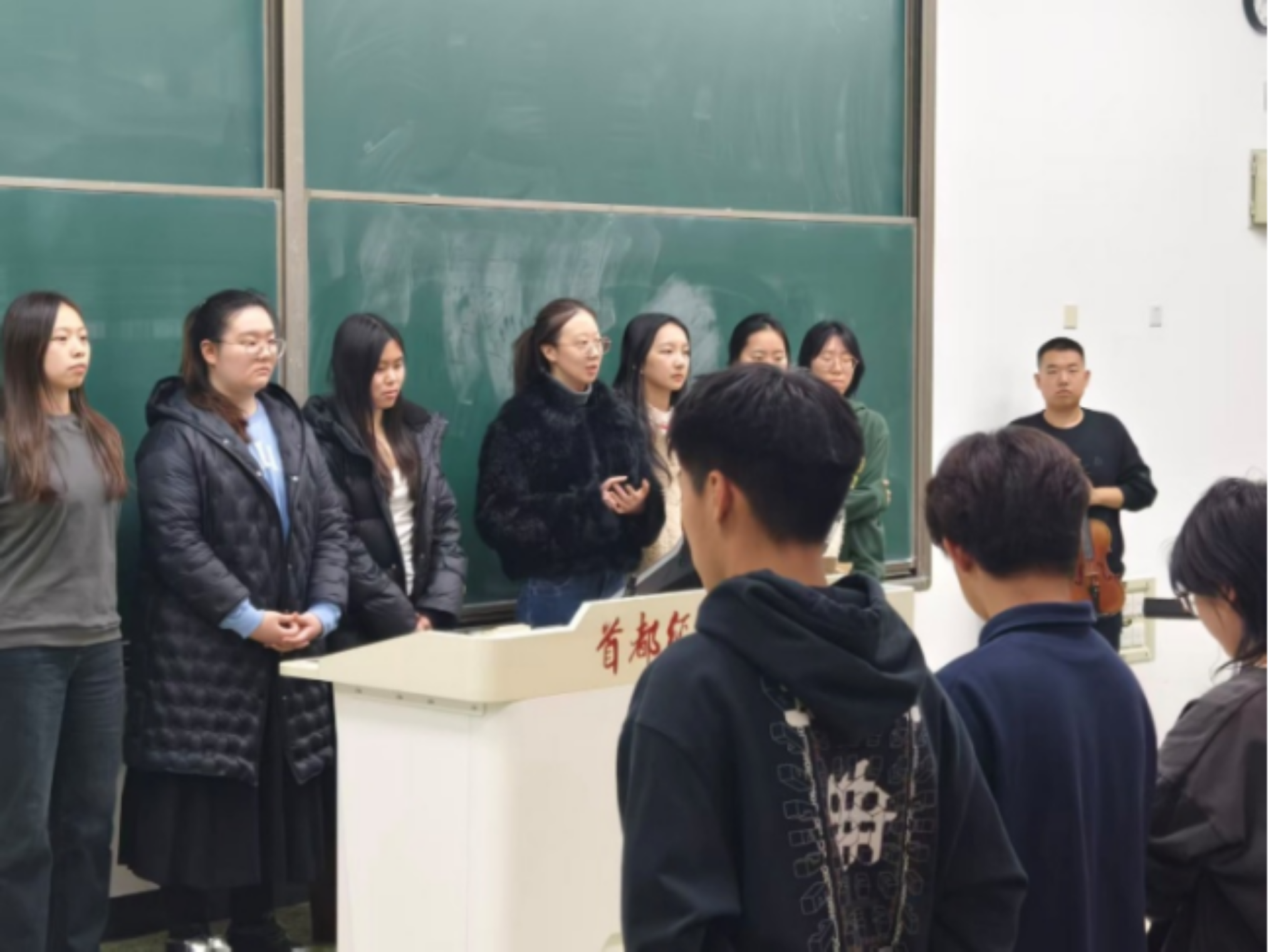 11月24日晚,新澳门六合彩高手论坛 团委书记郭奕彤以及主席团成员特意前来观摩一二·九合唱比赛排练进度。合唱团成员准备充足,信心满满,完整地向老师和主席们表演了一遍歌曲,随后,郭奕彤对同学们传达了寄语。她充分肯定了同学们近一个月的排练成果,并希望同学们要继续弘扬爱国精神,展现新时代青年的风貌。