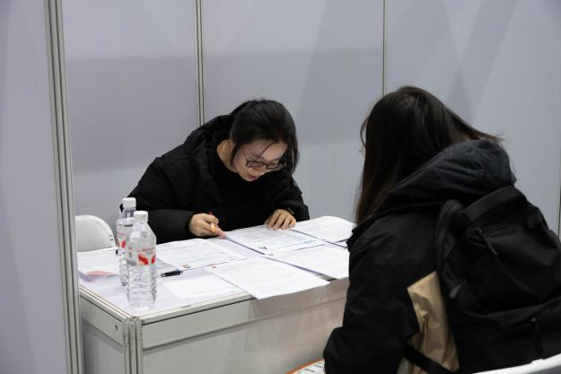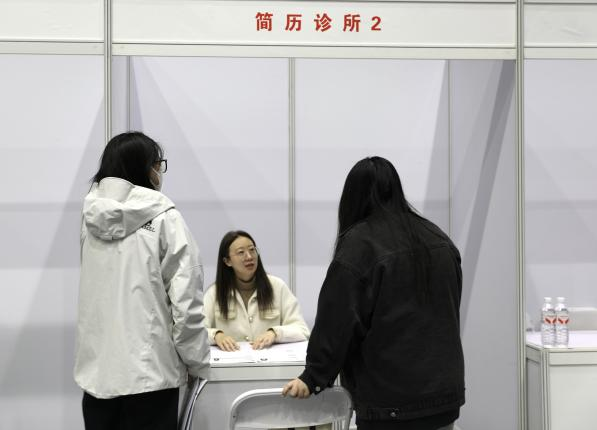 新澳门六合彩高手论坛 团委书记郭奕彤在双选会现场进行简历指导,根据实习岗位需求和同学们的实际情况提出针对性的修改意见。