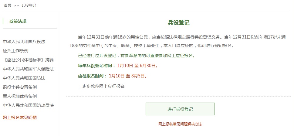 二、网上兵役登记流程