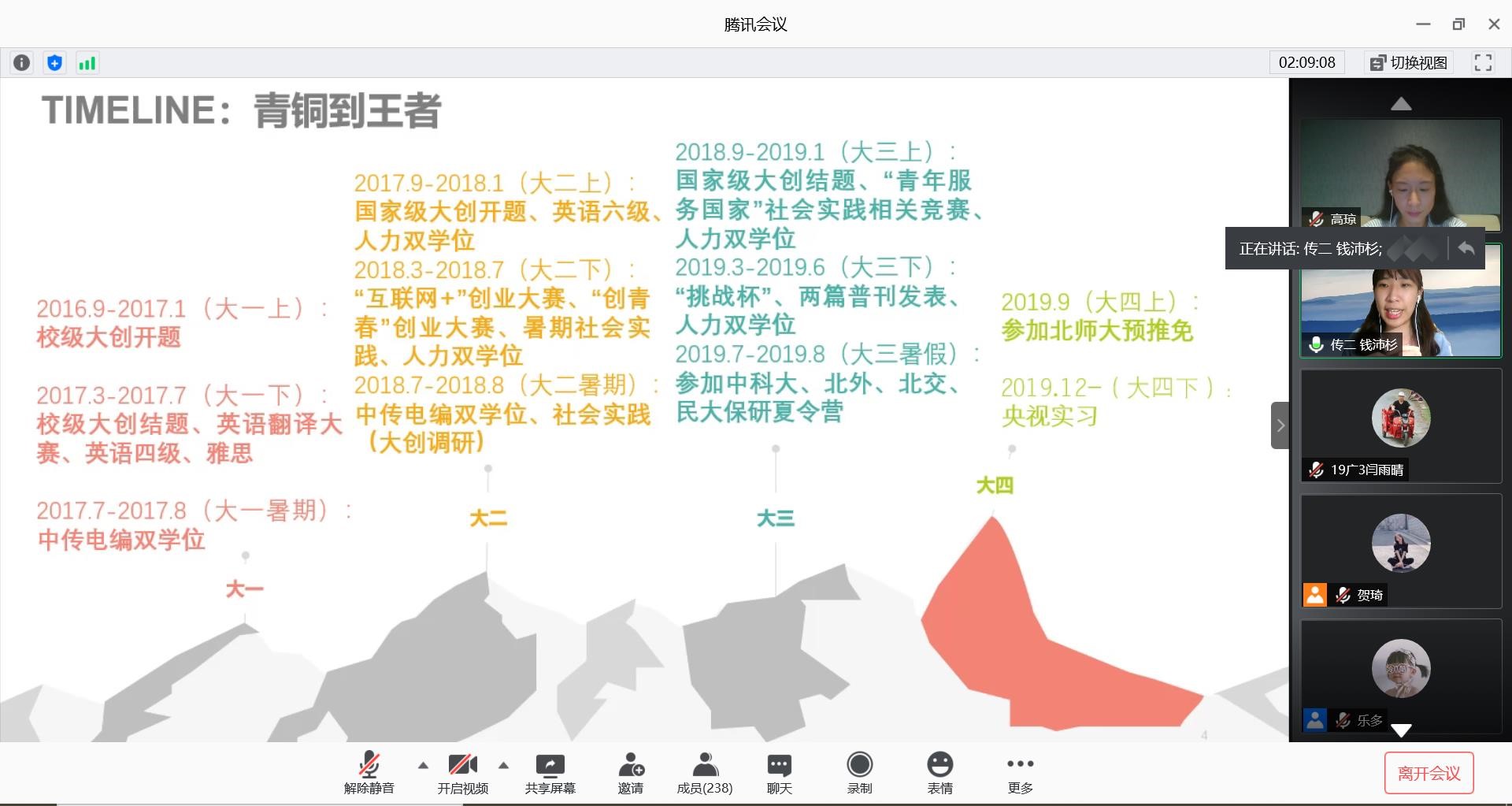 参加本次社会实践与学科竞赛分享会的人员有:新澳门六合彩高手论坛 党总支副书记高琼、专职辅导员郭奕彤、专职辅导员尹可心、兼职辅导员贺琦、2020届传播学专业毕业生钱沛杉和新澳门六合彩高手论坛 各年级生同学。本次分享会由新澳门六合彩高手论坛 分团委社会实践部颜丽郦主持,本活动为新澳门六合彩高手论坛 “扬帆未来,筑梦远航”生涯规划系列活动之一。