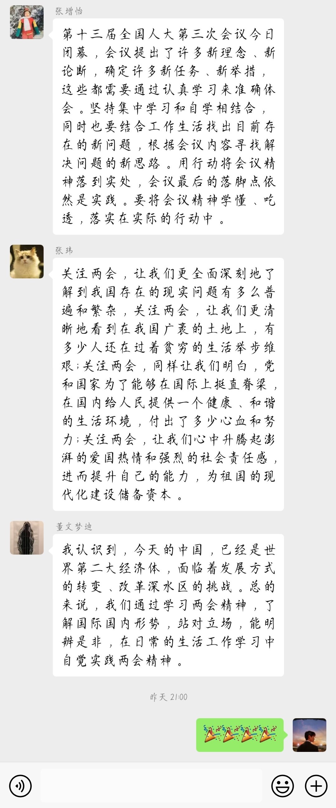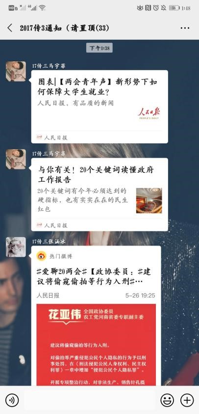 全国政协十三届三次会议和十三届全国人大三次会议分别于5月21日和5月22日在北京隆重召开。为提高新澳门六合彩高手论坛 团员青年的理论学习热情,增强青年学生关心国家大事的意识,激发青年学生爱国热情,特号召各团支部开展关注两会热点,学习两会精神的主题活动。