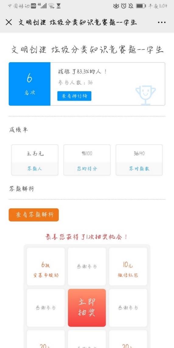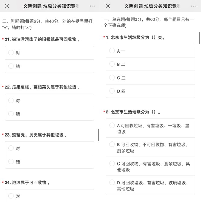 5月23日,新澳门六合彩高手论坛 党总支分享了有关垃圾分类知识的竞赛题目40道,本科生党员们答题热情高涨,纷纷转发答题并在微信群里互动讨论,上网搜索学习各种垃圾分属哪一类,还对照着小区橱窗内的宣传海报进行了深入了解。垃圾分类竞赛活动增强了大家对垃圾分类知识的了解,让“绿色、低碳、环保”的理念深入人心。本科生第一党支部党员刘琳说:“通过填写垃圾分类知识竞赛题,深深感受到自己在垃圾分类方面的知识还欠缺得很多,还有很多题目不确定甚至答错,这说明在平时还应该多多关注北京市垃圾分类相关规定,通过多种形式了解垃圾分类标准,锻炼提升自己垃圾分类的能力,起好党员的先锋模范带头作用,真正践行垃圾分类,党员先行!”