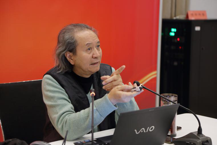 刘正成先生现为国际书法家协会首席主席,《中国书法全集》主编,曾长期担任中国书法家协会常务理事兼副秘书长。1992年起,享受国务院政府特殊津贴,是中国当代著名书法艺术家。他在讲座中介绍了中国书法历史发展的三大转折,由历史勾连现实,分析当今中国书法艺术热点的来龙去脉,既有理论梳理,又有实践支持,旁征博引,精彩纷呈。