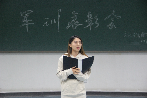 大会最后一项贺琦进行总结发言,熟悉的黑夹子和笑容,一句“谁还玩手机呢?”让同学们都印象深刻。贺琦从军训带队教师的角度进行分享,关注同学的状态、认真记录连队活动是她的工作,平均每天的睡眠不足五个小时,在同学们看不见的地方,连队指导员依然忙碌地奔走着,并且希望自己可以成为同学们在军训时坚实的依靠!贺琦表示这次的军训有笑有泪,有苦有甜,满意的结束了这一次的军训,和同学们一样她也创造了许多难忘的回忆。