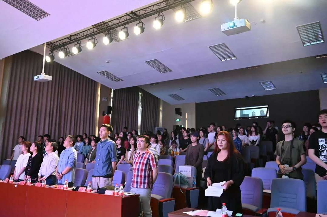 展示环节正式开始之前,分团委书记代启蒙老师致开场词。代老师指出,今年是新中国成立的七十周年和五四运动一百周年,在历史上具有深刻的重要意义。活动刚刚进行的《歌唱祖国》的合唱和重温入团誓词环节就印证着今天主题团日展示大赛的主题。作为当代的青年,大家需要将历史将铭记于心,用这种精神指引着我们未来的道路。同时她也表示了对今天的活动的期待,她希望18级新生们今天能够认真观看与学习经验,在明年的主题团日活动中发出更加耀眼的光芒。