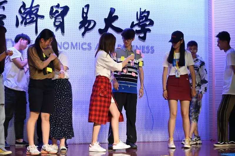 在多彩的比赛结束后,就是刺激的游戏环节了。游戏分为“甩掉便利贴”和“指压板跳绳”两个部分,18级每班派出一名同学参加。通过抽签分成三组,同一组的两个同学接力完成游戏的两个部分,用时最短的一组获胜,获胜组的同学获得了小礼品哦。