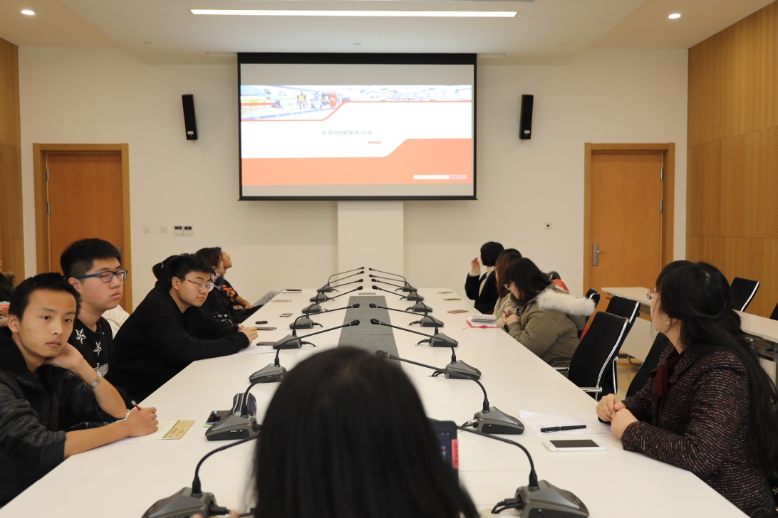 12月14日下午,2017级广告学卓越班第二期行业导师大讲堂在博远楼第三会议室举行。北京地下铁道通成广告有限公司彭博、班导师王端及17级广告卓越班的全体同学参加了此次活动。
