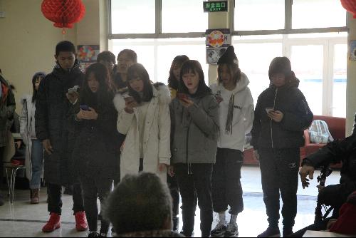 学生们并没有等多久,老人就陆陆续续的出来了。他们三三两两的坐在大厅周围的椅子上,而学生则站在另一端。这时,在大厅里汇聚的两方人,隔着时光的沟壑,好奇的互相对视着。
