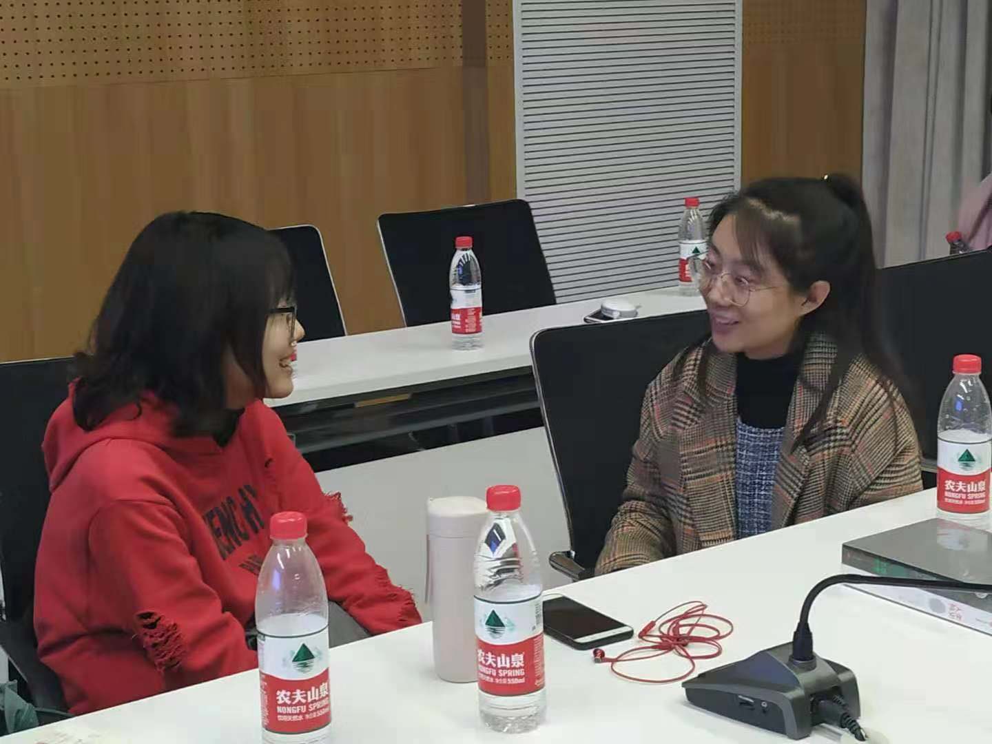 嘉宾温怡芳(右,传播学系2013级学生,硕士就读于中国传媒大学)
