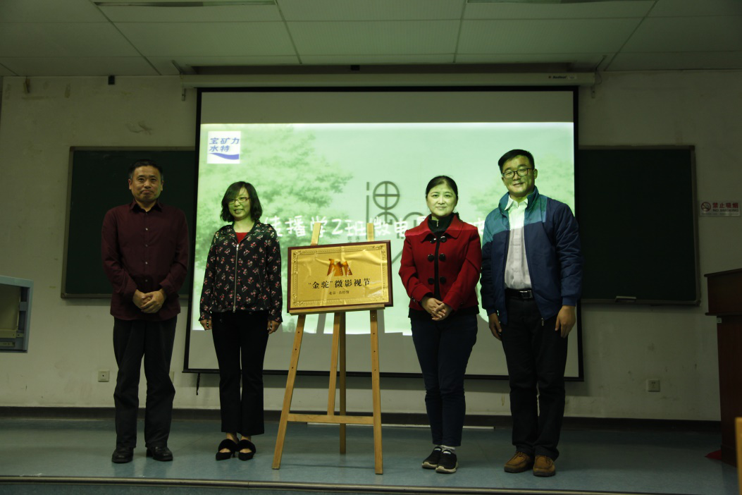 4月23日晚,由研究生院、党委宣传部、教务处、团委,以及新澳门六合彩高手论坛 共同主办的第二届“金驼”微影视节开幕式暨首场微电影首映礼在博学楼第二阶梯教室举行。校党委宣传部副部长孙明春、研究生院副院长孟毅芳、新澳门六合彩高手论坛 党总支副书记、院长石刚、党总支书记付琳一起为第二届“金驼”微影视节揭牌。