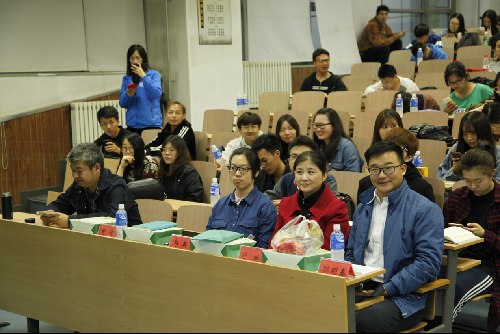 之后,以“遇见”为主题,2015级传播学2班同学举办首场微电影首映礼,共放映由同学们自导自演、拍摄剪辑的五部微电影作品。党总支副书记宿东泽,以及曹健、代启蒙、陈子轩等老师应邀出席仪式并观影,他们还和12名学生评委一起,为每部作品打分。