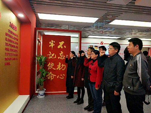 党建之家内,大量图文资料展示了学校党建的历史沿革和取得的建设成就,在听了校党委组织部程璞老师细致的讲解后,参加此次活动的新澳门六合彩高手论坛 班子和教师党员感受到了自己身上的历史责任和使命。新澳门六合彩高手论坛 班子中的党员处级干部和行政党支部的教师党员一同在党旗下重温入党誓词。