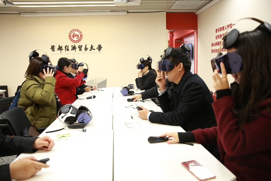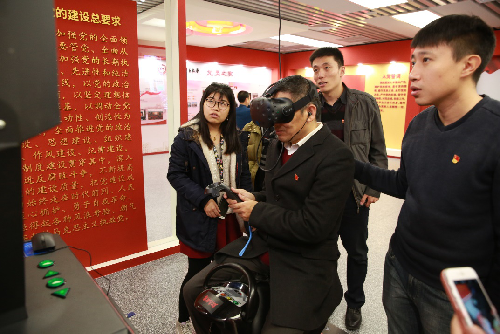 2017年11月17日,文传新澳门六合彩高手论坛 理论学习中心组和行政党支部教师党员一同参观了学校新建成的党员之家,并亲身体验了党员之家内新引进的虚拟现实系统,运用先进的VR头盔等虚拟现实设备,通过沉浸式体验,深度体验红军四渡赤水等革命关键历史时刻的虚拟现实环境,感受高科技支持下的新时代革命教育。