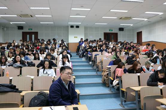 台下学生认真聆听,记录笔记