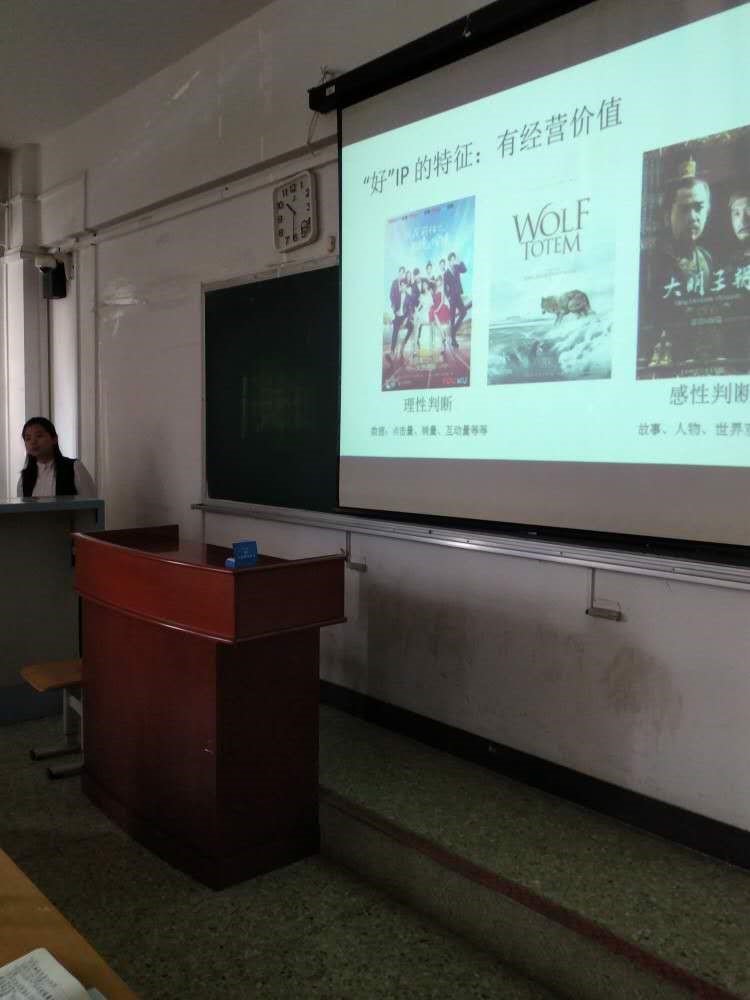 讲座在高亢的主持下拉开了帷幕,宫老师先是从近年来IP改编影视剧的狂热现象入手,引出了同学们耳熟能详的“IP”概念,并以一系列题材广泛的IP产品开发为例,指出“文化艺术的各个领域都蕴藏着大IP的可能”。