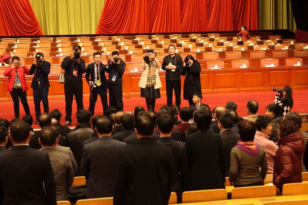 上午8时30分左右,结束了“市民对话一把手”紧张的直播工作,实习生们进入北京会议中心报告厅,参与正式的开幕式现场报道。两位实习生负责现场照片的采集以及会议花絮的拍摄,要用镜头记录下大会开幕式的全程。为了保持报道的时效性,在照片采集过程中,必须实时上传。实习生们每拍摄一段时间,都要立即对照片进行筛选和处理。整个报道过程在紧张有序中进行。在报道过程中,指导老师对两位实习生的认真的态度和扎实的功底予以肯定,并对她们存在的不足给予耐心地指导。