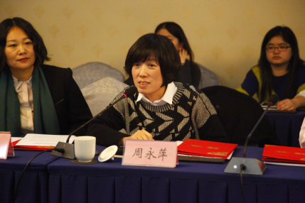 最后,由2016级硕士研究生卓然代表发言。她代表全体2016级研究生对4位校外硕士生导师的到来表示欢迎,她希望可以在自主学习、独立思考、科研创新方面有所建树的同时,加强与校外导师交流沟通,深入业界,提高专业实践认知能力。