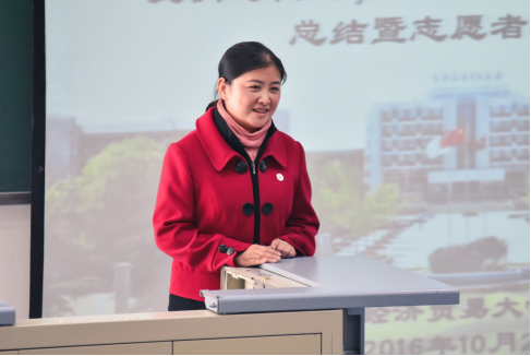 志愿者岗位有台前,当然也有幕后,无论台前幕,没有他们的共同努力,定无法完成如此艰巨的任务。2016级的姚玉代表各幕后岗位志愿者发言,他表示在此次活动中有很多的收获,感受到了一种专属于首经贸的情怀,他向各位志愿者呼吁“纵使若干年后我已步履蹒跚,但你(首经贸)的寿辰我定会到场”。