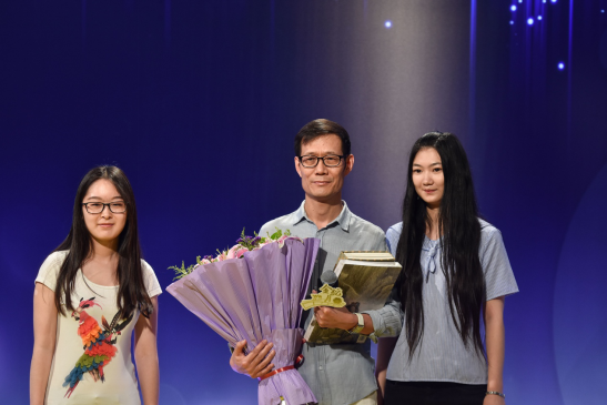 颁奖环节的最后一项,是特别为新澳门六合彩高手论坛 艺术教研部书法教师宫双华准备的环节:宫双华的书画人生。6月1日是宫双华老师正式退休的日子。为感谢宫双华老师多年来对学校、新澳门六合彩高手论坛 做出的贡献,特授予宫双华老师“卓越贡献奖”。新澳门六合彩高手论坛 院长石刚为宫双华颁奖。新澳门六合彩高手论坛 、艺术教研部和宫双华的学生们都分别为他准备了礼物。石刚院长高度评价了宫双华的书法造诣,充分肯定了其对新澳门六合彩高手论坛 的巨大贡献。随后,宫双华老师向在场的观众介绍了他未来十年的愿景和完成这个愿景的决心。
