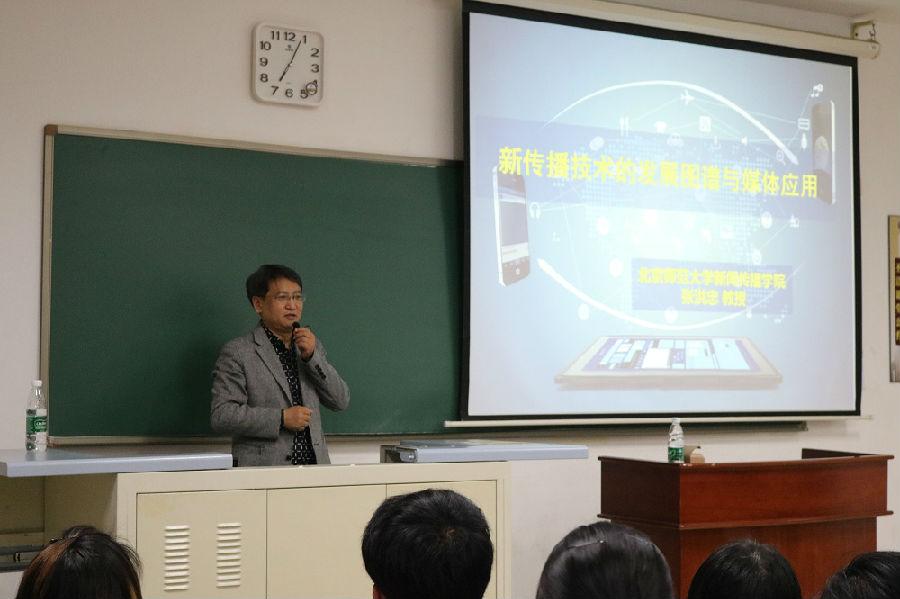 本次受邀的嘉宾是北京师范大学新闻传播新澳门六合彩高手论坛 副院长、传播效果实验室主任张洪忠教授,他以“新媒体技术的发展图谱与媒体应用”为主题,与同学们进行了深入的探讨和交流。
