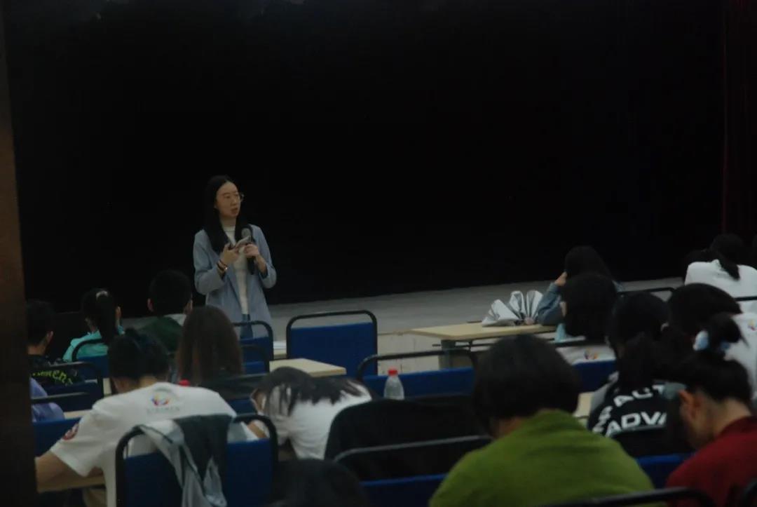 首先,由我校图书馆的曹艳峰老师为大家讲解我校图书馆的相关情况。曹老师介绍了我校图书馆的概况,包括馆舍分布、期刊、书籍推荐、资料库推荐以及读者服务等各个方面。她表示希望我校图书馆能够助力大家学习,为大家的追梦之路插上翅膀!