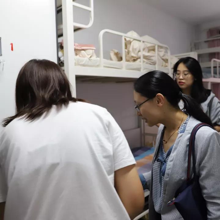 2021年9月18日,新澳门六合彩高手论坛 新生陆续到校报道。下午五点,新澳门六合彩高手论坛 党总支副书记高琼、分团委书记郭奕彤以及老生代表们一同走进新澳门六合彩高手论坛 新生宿舍,对新澳门六合彩高手论坛 新生表示热烈欢迎与诚挚问候。