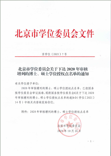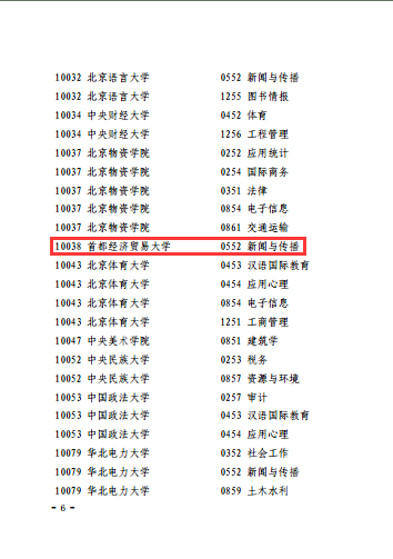 根据北京市学位委员会2021年10月26日下达的《北京市学位委员会关于2020年审核增列的博士、硕士学位授权点名单的通知》(京学位[2021]7号),首都经济贸易大学新闻与传播专业硕士学位授权点位列新增硕士专业学位授权点名单中。