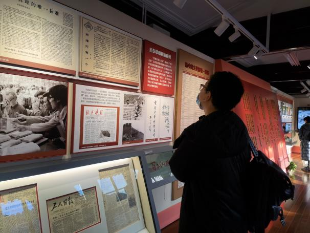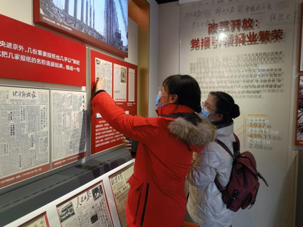 在参观中,教师党员们结合学科专业知识就展览内容进行探讨,进一步加深了对于党的新闻事业发展历史和北京地区报业发展的源流脉络的了解。