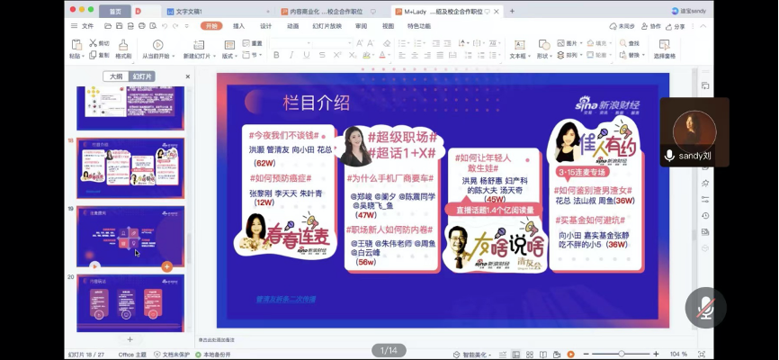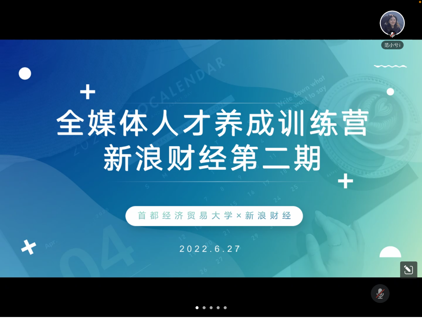 新澳门六合彩高手论坛 和学校就业指导中心与新浪财经联手共同开展了“全媒体人才养成训练营”第二期宣讲会,于2022年6月27日15点以线上会议的形式面向全校学生展开。