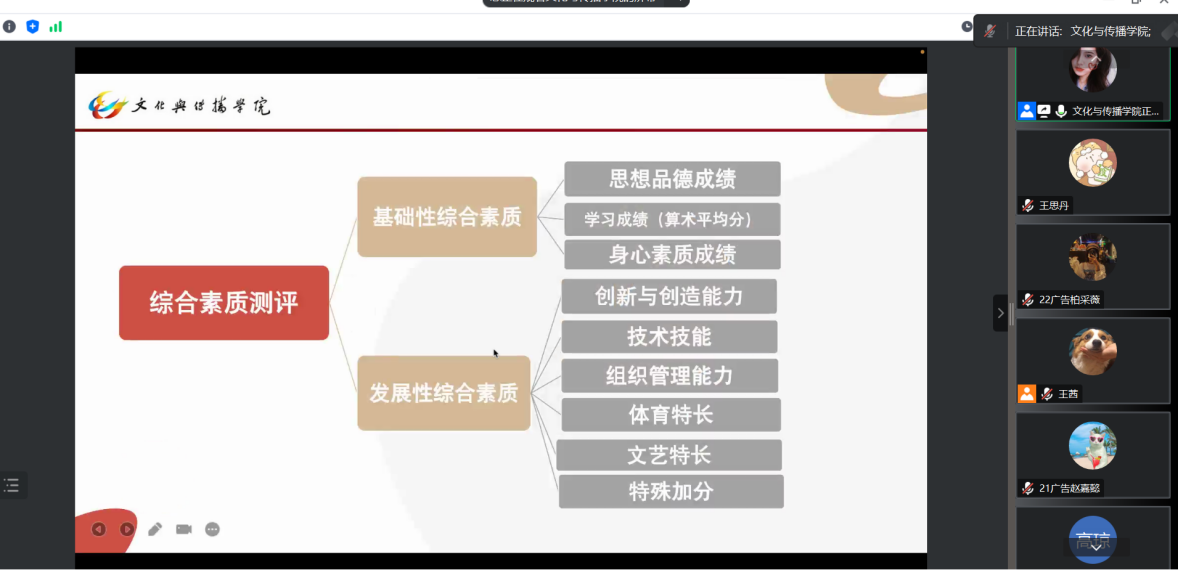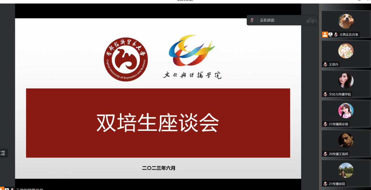2023年6月30日,新澳门六合彩高手论坛 于线上召开双培生座谈会。出席本次会议的有党总支副书记高琼、副院长陆彦明、分团委书记郭奕彤、教务秘书尹思筠、专职辅导员袁心玥,以及2020级、2021级、2022级全体双培生。