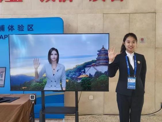 侯子怡所在的创新点位,吸引了众多外宾参与其中,该点位的动作捕捉设备为与会嘉宾提供了身临其境的北京景点打卡服务,参会嘉宾可在故宫、颐和园等7类3D背景中拍照留念,亲身体验无穿戴AI高精实时全身捕捉技术,并现场获取电子版照片。该点位让参会嘉宾充分感受到了北京作为全国科技创新中心的发展成就。