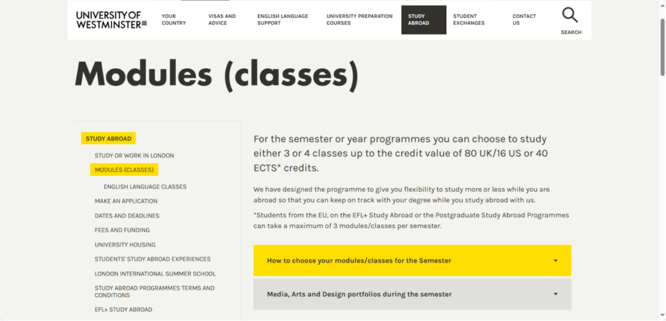 详细模块目录点击链接查看://www.westminster.ac.uk/international/study-abroad/modules-classes