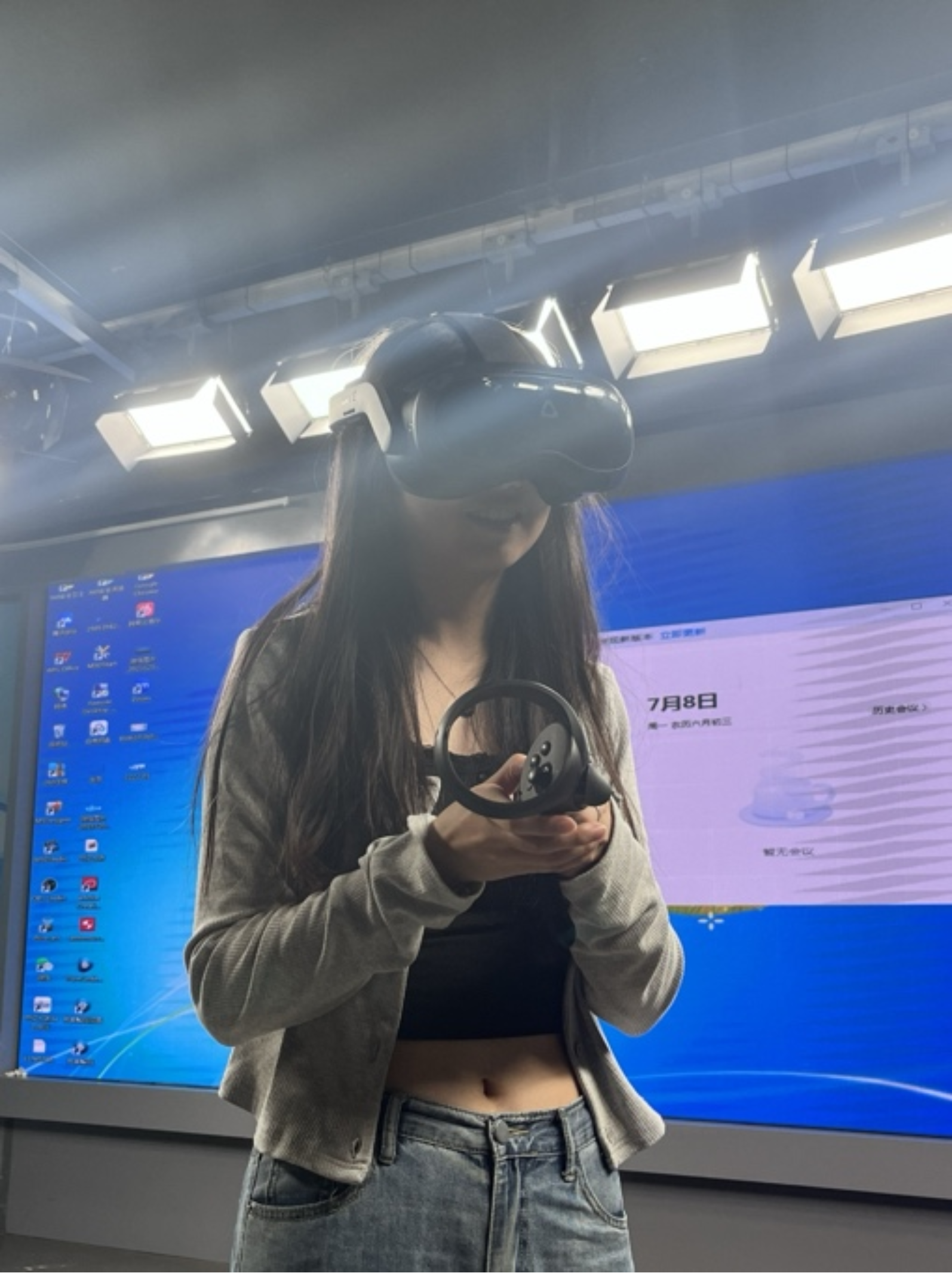 戴上VR头盔,你就能身临新闻现场,实现空间上的零距离,让新闻在眼前。初识全景第一课,实习生在演播室佩戴VR设备,体验中国经济网“‘飞临探秘冬奥场馆”“全景体验永不落幕的线上世园会等全景漫游导览系统,感受全景技术赋予新闻的沉浸与交互。