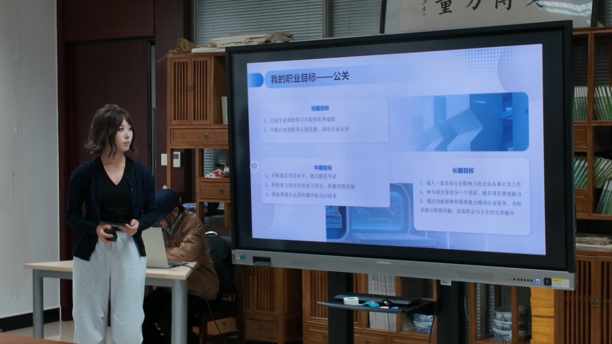 在成长赛道中,选手多为刚入学的低年级同学。他们对专业怀有高度热情,并基于自身成长过程中积累的技能与兴趣,初步勾勒出发展方向,如公关、新闻编辑,家乡文旅传播者等。他们将大学规划分解为短期与长期目标,展现出良好的自我认知与可贵的自律精神。