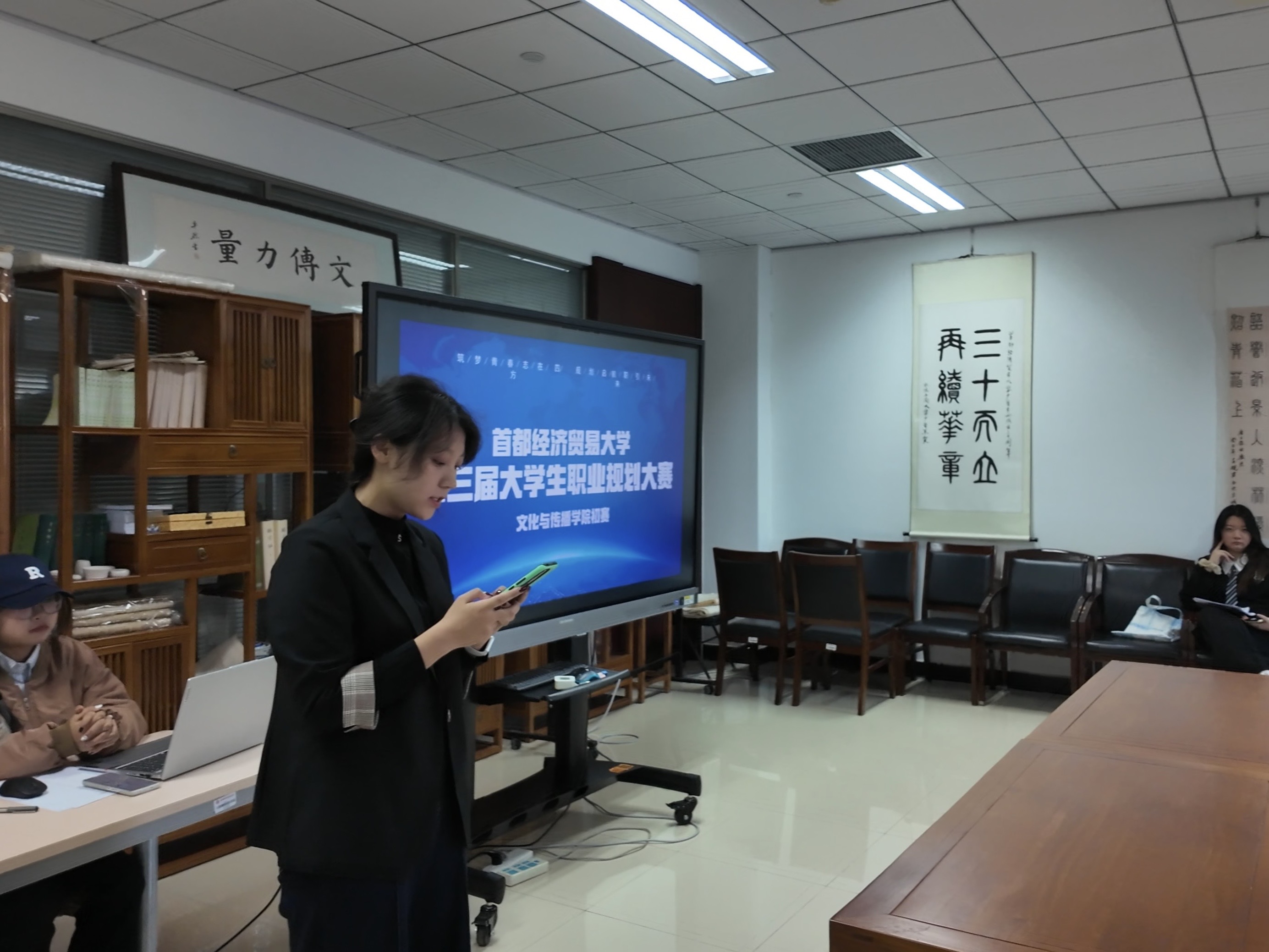 10月20日,新澳门六合彩高手论坛 “逐梦青春志在远方,规划起航职引未来”职业生涯规划大赛初赛圆满收官。20余名选手以清晰的蓝图与饱满的热忱,勾勒出文传学子朝气蓬勃的职场新貌。首先,选手们依次进行个人风采展示;随后,由评委进行现场提问。