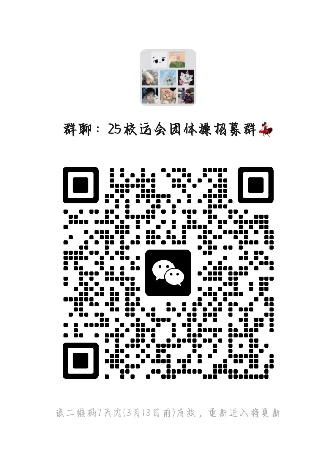 现面向全院同学招募团体操队员,不限男女,除大二参加开场表演女生外。请有意向的同学扫码进群填表。