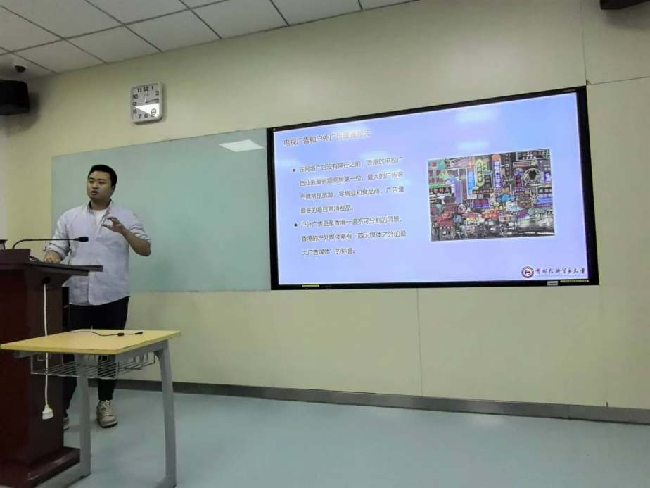 11月14日下午,第二场观摩课在慎思楼122教室举行,系由广告学系推出的《中外广告史》课,李荃老师主讲。当天的第一个环节是课堂报告,同学们以分组形式,讲述了喜茶、香奈儿等品牌的发展历史,李荃一一做了点评。随后,李荃介绍了香港、台湾等地的广告发展史,引用具有特色的经典广告案例,在幽默诙谐的气氛中们讲授了这些地区的广告特色和发展进程。
